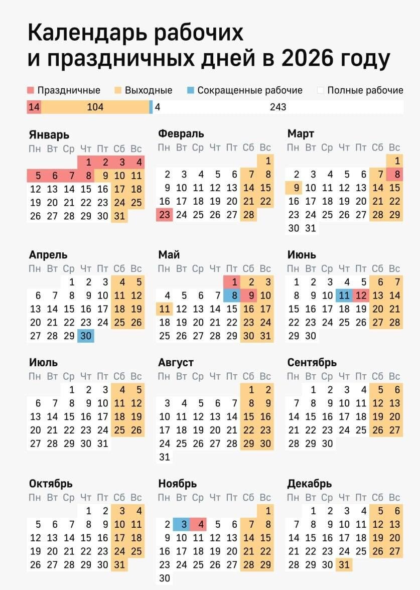 🗓 В конце февраля россиян ждёт четырёхдневная рабочая неделя.