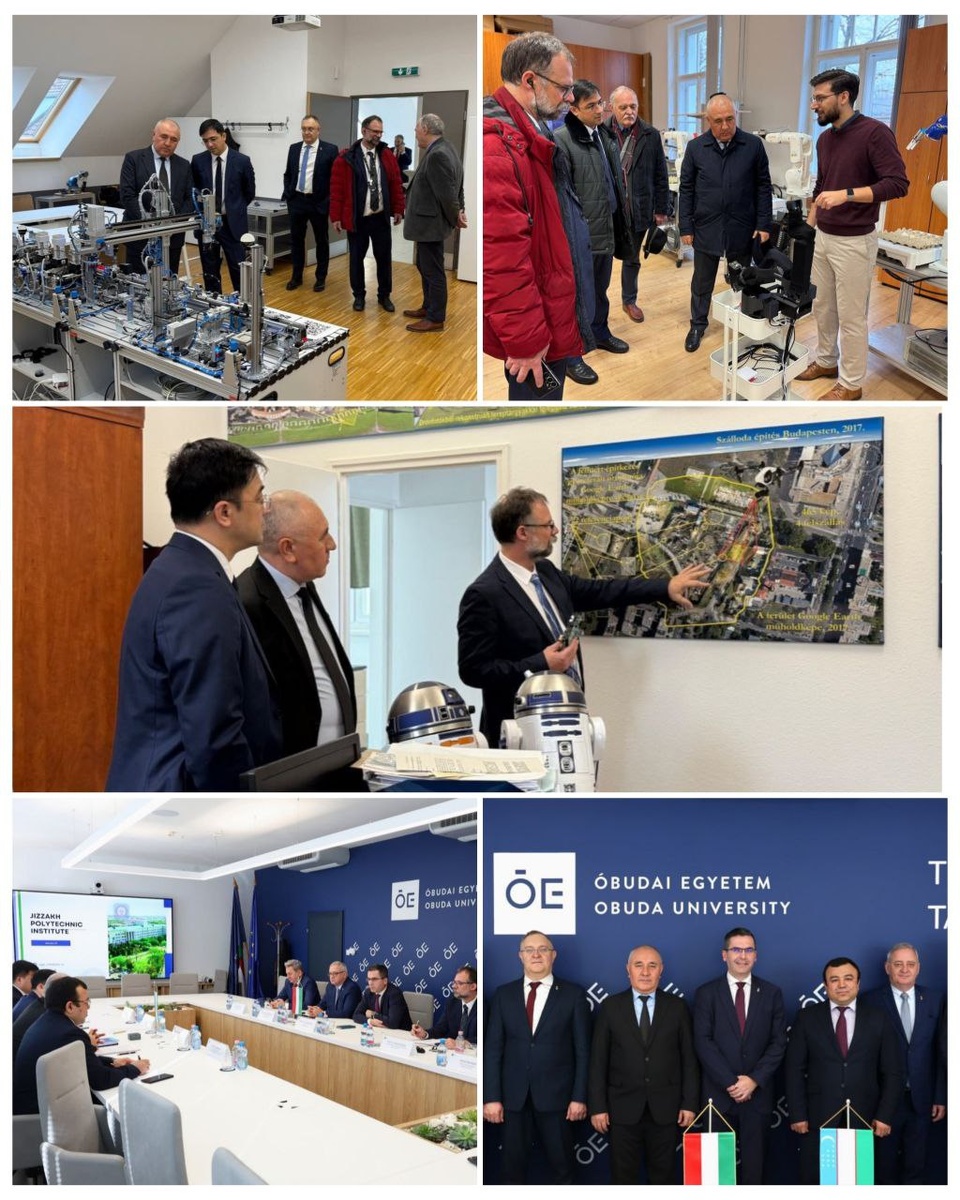 Президент Шавкат Мирзиёев иштирокида 2025 йил 2 декабрь куни бўлиб ўтган Халқ депутатлари Жиззах вилояти Кенгашининг навбатдан ташқари сессиясида Жиззах политехника институти Венгриянинг Обуда университети билан амалий ҳамкорлик қилиши бўйича топшириқ берилганди. Мазкур топшириқ ижроси юзасидан Жиззах политехника институти делегацияси 27-29 январь кунлари Венгриянинг нуфузли Обуда университетида бўлди. Батафсил Каналимизга обуна бўлинг ва энг сўнгги янгиликларни кузатиб боринг Jizzaxnews |Тelegram | Facebook | Dzen | YouTubе