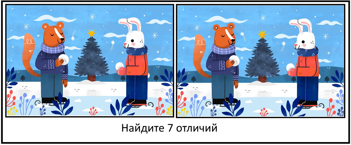 Для вас новое задание из раздела найдите отличии. Перед вами два одинаковых рисунка, однако между ними есть 7 отличий. Постарайтесь найти все отличии.