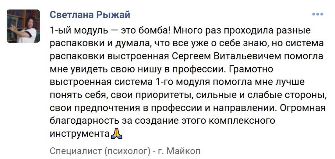 Отзыв на курс "СИСТЕМА привлечения клиентов для психолога, коуча"