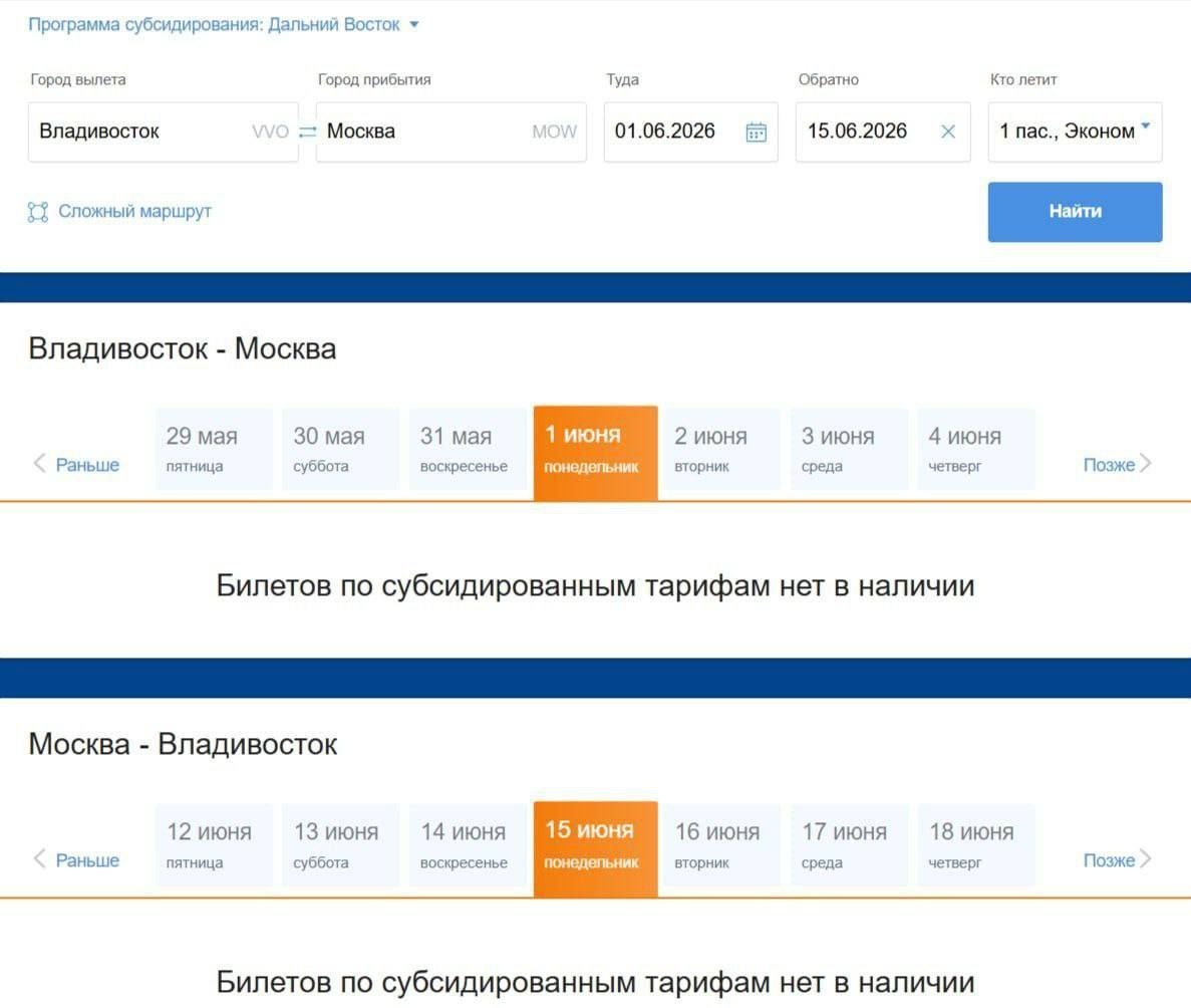 На сайте авиакомпании невозможно найти льготные предложения ни на ближайшие месяцы, ни на лето. Даже билеты по рыночным ценам исчезли! Люди не могут улететь. "Аэрофлот", прокомментируйте ситуацию! 📲 Хотите поделиться новостью ❔ Написать в Приморье | Онлайн️ ✉️