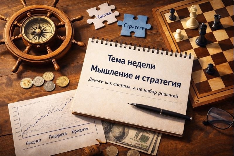 🗓 Деньги как система, а не набор решений Прошлую неделю мы говорили об ответственности и контроле. О том, как перестать жить «по факту» и начать управлять деньгами. ➡️ Но контроль — это только начало. Дальше встает главный вопрос: А куда вообще ты ведёшь свои деньги? 🔭 Фокус недели Деньги растут не от усилий, а от правильной стратегии. Можно: 🔸 много зарабатывать 🔸 быть дисциплинированным 🔸 контролировать расходы …и при этом стоять на месте, потому что: 🔸 нет горизонта 🔸 нет приоритетов 🔸 нет системы решений ✔️ На этой неделе разберём: 🔹 чем стратегия отличается от тактики 🔹 почему без стратегии даже хороший доход «утекает сквозь пальцы» 🔹 как подушка, кредиты, бюджет и инвестиции складываются в одну систему 🔹 почему выигрывает не самый богатый, а самый стратегичный Без мотивационных лозунгов. Без «волшебных кнопок». По-взрослому. 👑 Для кого эта неделя Для тех, кто: ▪️ устал постоянно «разруливать» финансы ▪️ хочет перестать принимать решения на ходу ▪️ понимает, что ден