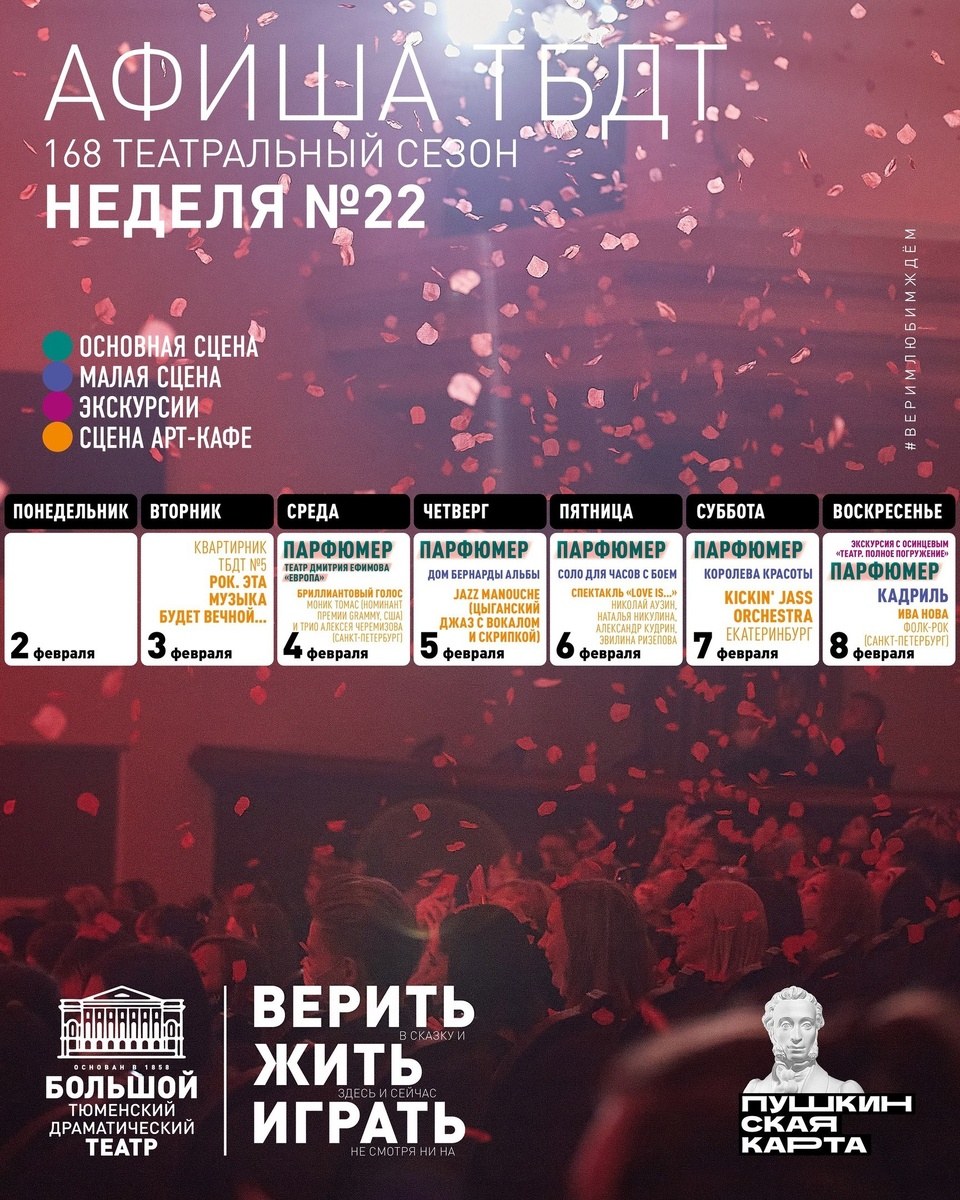 ΠΎΠ΄ΡΡ ΠΊΠΎΠ½ΡΠ΅ΡΡΡ. ΠΡΠΎ ΠΎΡΠ»ΠΈΡΠ½Π°Ρ Π²ΠΎΠ·ΠΌΠΎΠΆΠ½ΠΎΡΡΡ ΠΏΡΠΎΠ²Π΅ΡΡΠΈ Π²Π΅ΡΠ΅Ρ Ρ ΠΈΠ½ΡΠ΅ΡΠ΅ΡΠ½ΡΠΌ ΡΠ΅Π°ΡΡΠ°Π»ΡΠ½ΡΠΌ ΠΈ ΠΌΡΠ·ΡΠΊΠ°Π»ΡΠ½ΡΠΌ ΠΎΠΏΡΡΠΎΠΌ. ΠΡΡΠΎΡΠ½ΠΈΠΊ: Π’ΡΠΌΠ΅Π½ΡΠΊΠΈΠΉ ΠΠΎΠ»ΡΡΠΎΠΉ ΠΡΠ°ΠΌΠ°ΡΠΈΡΠ΅ΡΠΊΠΈΠΉ Π’Π΅Π°ΡΡ #ΠΡΠΈΡΠ°Π’ΡΠΌΠ΅Π½Ρ #tyumen #tmn #tymen #Π’ΡΠΌΠ΅Π½Ρ