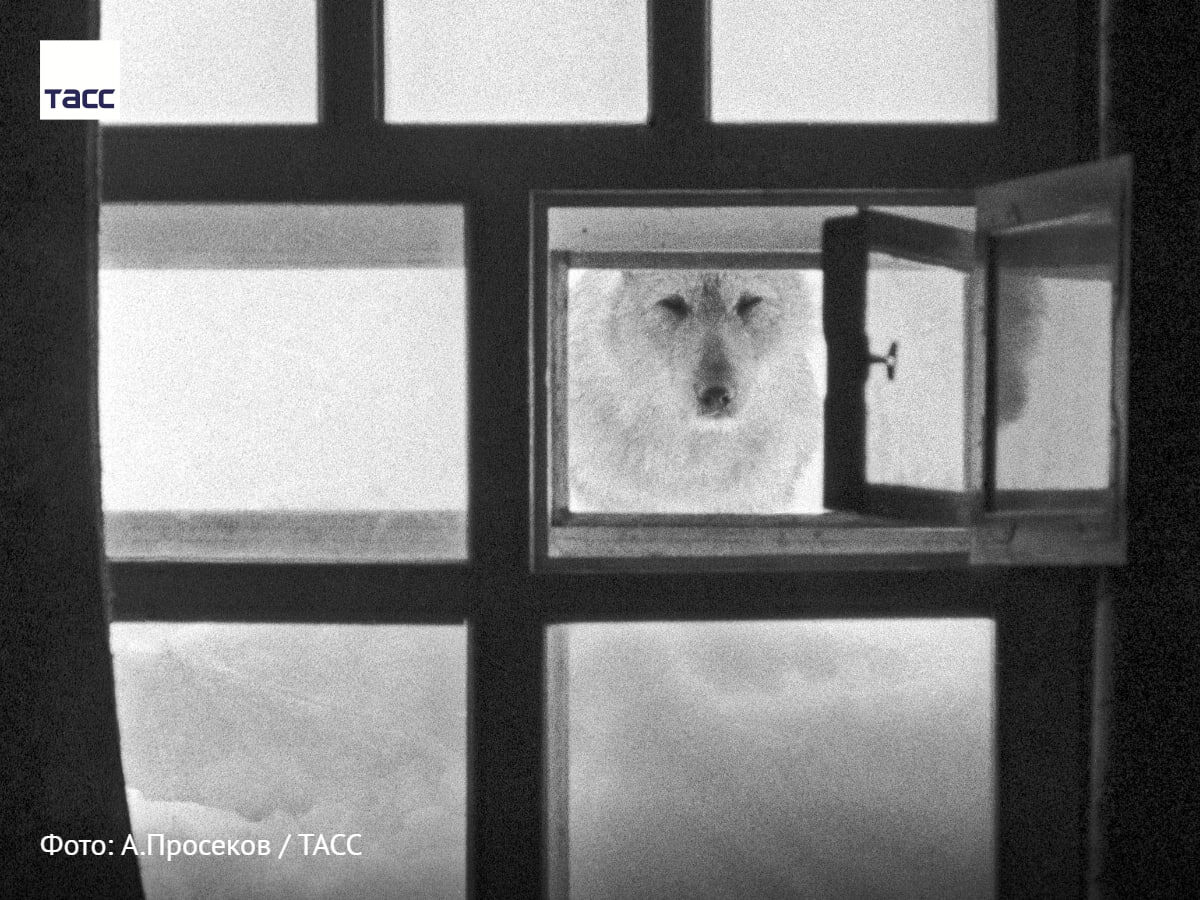 А это белый медведь заглядывает в окно полярной станции🐻. Архивный кадр 1989 года.