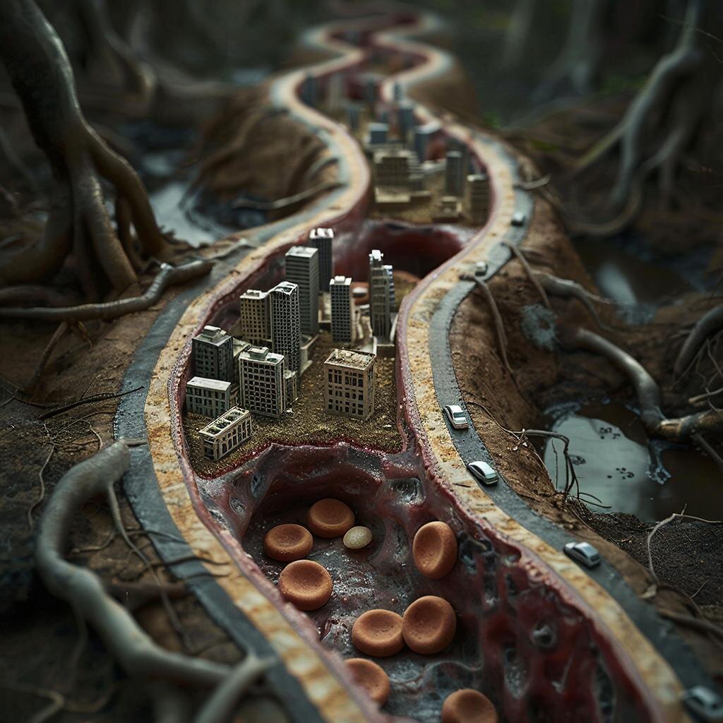 Рассмотрение городов как центров прогресса и культурного развития является удобным, но поверхностным взглядом, игнорирующим их системную функцию в рамках планетарного организма. С позиции клеточной модели, масштабная урбанизация представляет собой не естественный рост, а патологический процесс формирования склеротических бляшек — плотных, малопроницаемых отложений, нарушающих ток жизненно важных жидкостей и циркуляцию сигналов. Современный мегаполис — это не «орган» в здоровом понимании, а зона хронической ишемии, где нарушен естественный метаболический обмен и где доминирует паразитическая логика извлечения ресурсов из окружающих тканей для поддержания собственной гиперактивности.