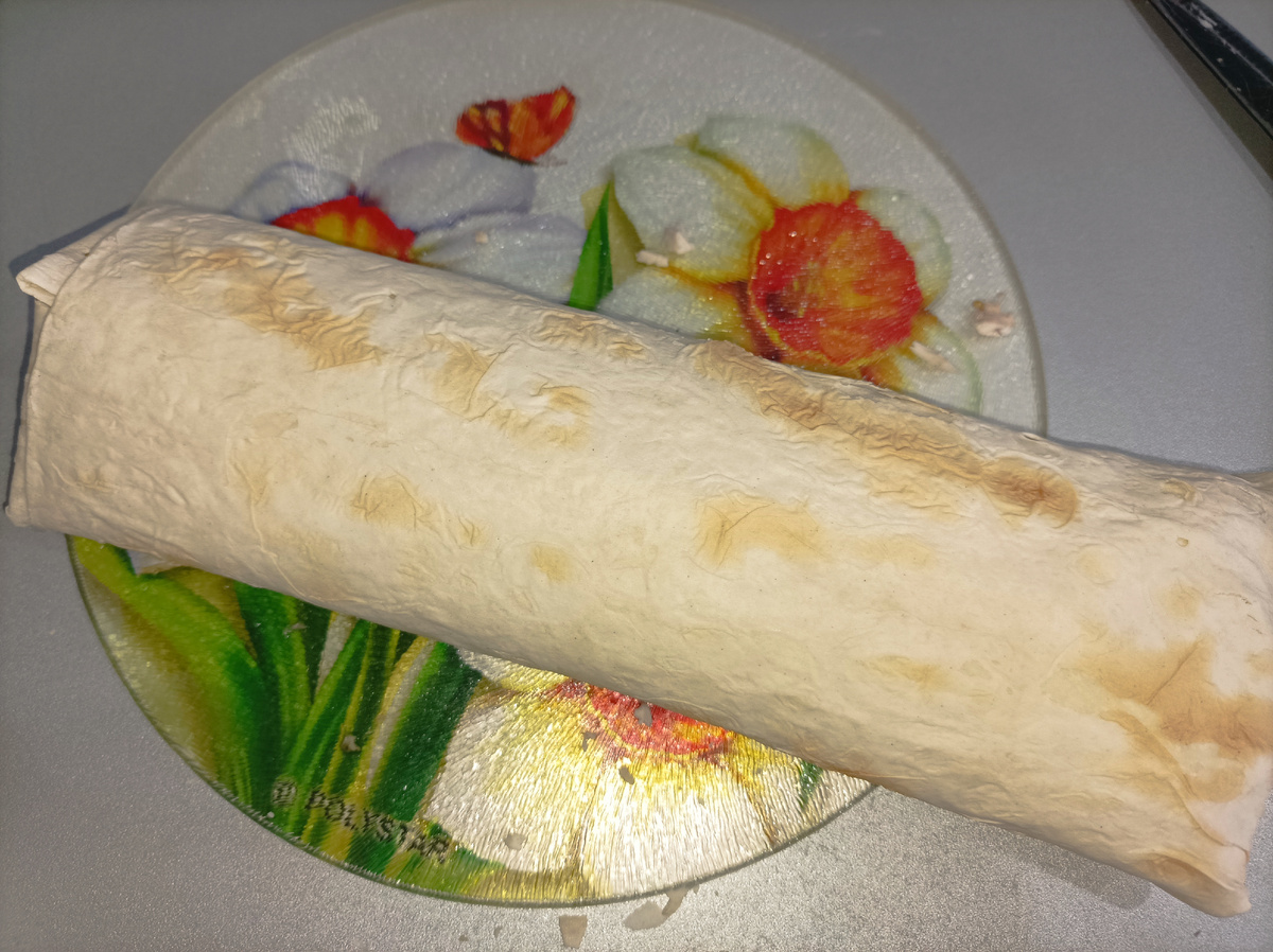 Вот как раз на днях дочери делала лаваш и с собой в поезд. Там мясо, сыр и огурец.