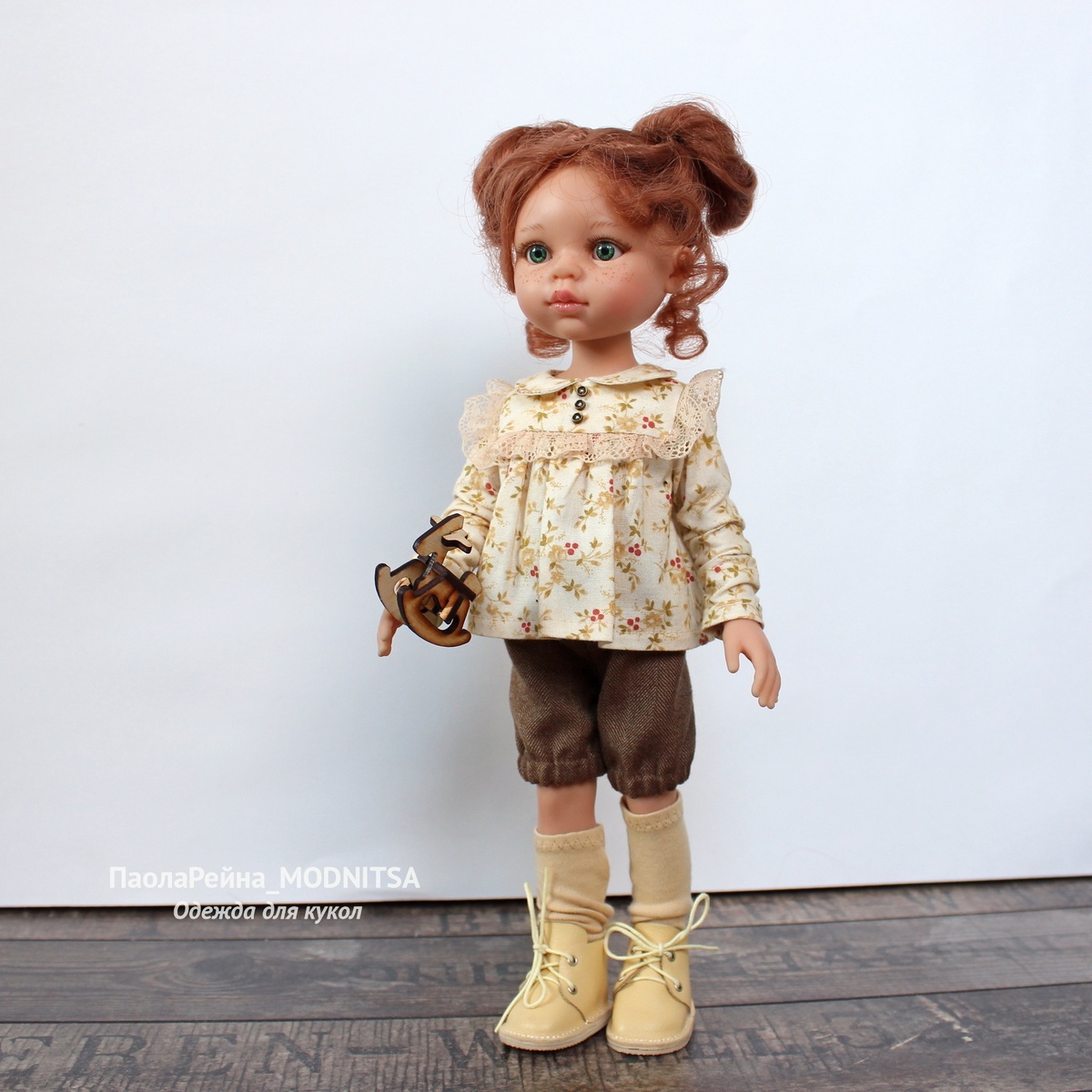Первое фото - даже и не вспомню какого года. Тут мой Рыжик еще с буклями. Я тогда получила от подружки посылочку, в которой был совсем маленький отрез этой милейшей хлопковой ткани, которого хватило только-только на блузку. Нашлось нежнейшее кружево, малепуськи пуговки и время. Но встал вопрос: с чем же эту блузочку носить? Конечно, с бриджиками! И именно на резиночке! А вот второе фото сделано дней 10 назад, когда наконец-то я смогла смонтировать видео и нарядить уже обновленную Кристи в ту же блузку, но в новые бриджи. Да-да, они новые, только сшитые из той же ткани, тоже с резиночками, и по той же самой простой и легкой технологии.