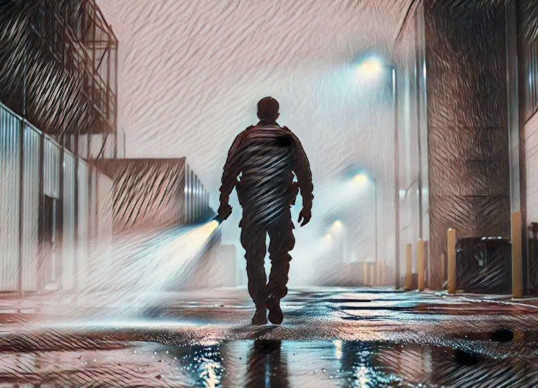 Я работал на КПП небольшой фабрики. По утрам пропускал людей на работу, по вечерам — с работы, а по ночам совершал обходы территории. Будка КПП была невелика: две двери и два окна — одно выходило на улицу, другое — во внутренний двор фабрики. Обычно я дежурил в одиночку. Да и зачем мне напарник, если кнопка вызова полиции всегда при мне? Ну и во-вторых, мужик я не из трусливых, всегда могу за себя постоять если что. К тому же видеонаблюдение было отменным — вся фабрика как на ладони. Были конечно белые пятна, участки которые камера не показывала, но ведь про них надо знать.