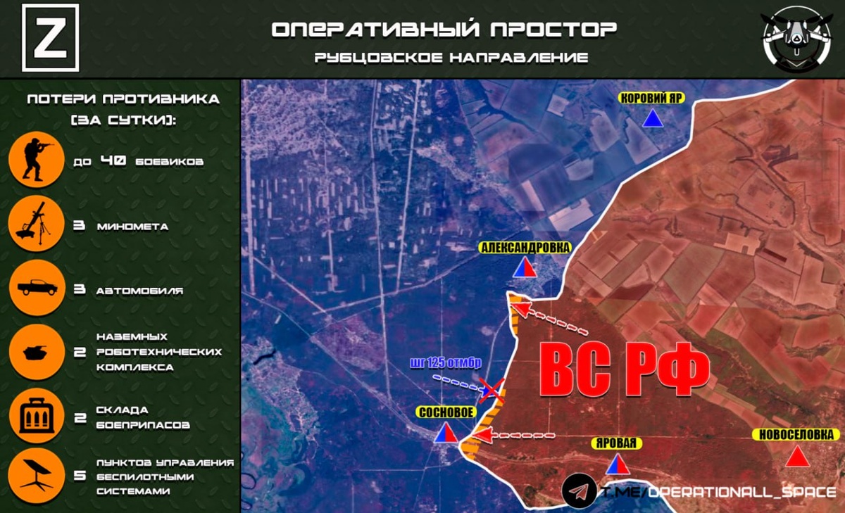 🇷🇺На Рубцовском направлении ВС РФ продолжают вести бои на рубеже населённых пунктов Александровка и Сосновое