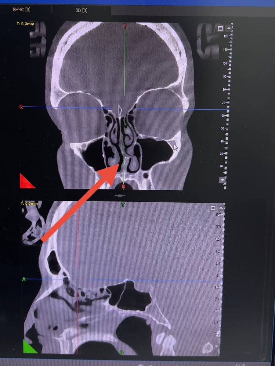 Фсе. Ну, или почти...) 📌Компьютерная томография пазух носа покажет: ▪️есть хронический процесс или нет. Это просто утолщение слизистой или уже полипы или киста. ▪️есть уровень жидкости в пазухах при остром синусите или это только отек слизистой ▪️соустье - дырочка, которой пазуха открывается в полость носа - работает или нет. Кстати, это очень важно учесть перед синуслифтингом для уменьшения рисков воспаления пазух после операции ▪️насколько искривлена носовая перегородка и мешает ли это носовому дыханию ▪️увеличены или нет носовые раковины. ▪️насколько проходимы носовые ходы, в том числе из-за аденоидов 📌Чего кт не покажет: ▪️есть аллергия или нет ▪️это доброкачественная опухоль или нет. Для этого делают МРТ с контрастом По итогу, КТ пазух носа - хороший первый шаг, чтобы понять, почему нос не дышит и исключить «опасное». Ведь, именно КТ дает максимальную информацию по состоянию полости носа и пазух. В реальной практике в 95% случаев при жалобе «нос не дышит» находят не