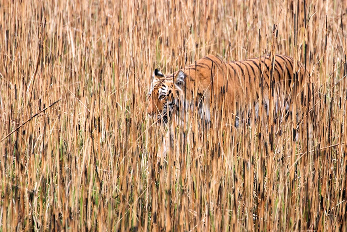 Задолбала псевдонаучная дичь, которой загадили весь интернет "научпоперы" и копирасты! Несут бред про "у жертв нецветное/дихроматическое зрение". Да сколько можно врать? Камуфляж тигра прекрасно маскирует его и для человека! Камуфляж не играет для тигра первостепенную роль, это нужно уяснить сразу. Тигры - засадные охотники, которые предпочитают внезапно нападать на звериных тропах из засады. Намного важнее для них скрыть свой ЗАПАХ, потому что учуять хищника проще, чем увидеть. Тигр занимает позицию и ждёт, пока туда-сюда ходят животные. Они осторожные, поэтому поймать их даже при резком выпрыгивании из куста непросто. И проходят они не как люди в московском метро в час-пик, а намного реже. На звериных тропах может спрятаться даже лось. Камуфляж помогает тигру не спалиться. Хорош ли он? Прекрасен! Светлые полосы выглядят как освещённая солнечным светом поверхность, а чёрные как тень! Оранжевый цвет имитирует: землю, стволы и ветви деревьев, пожухлую траву и листву, солнечные блики, да