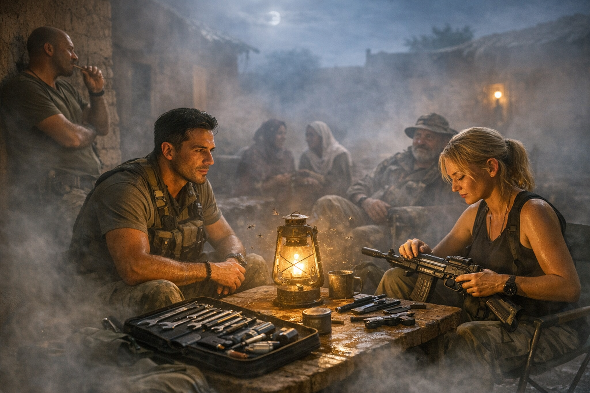 – С водой – обязательно. Здесь она дороже бензина, это валюта. А вот инструмент… – Она на мгновение задумалась, отложив в сторону затвор. – У меня есть, целый новый набор в чехле. Ещё из Москвы взяла, на всякий случай. Лежал без дела. Давай подарим от нас двоих? Думаю, это будет то, что надо.