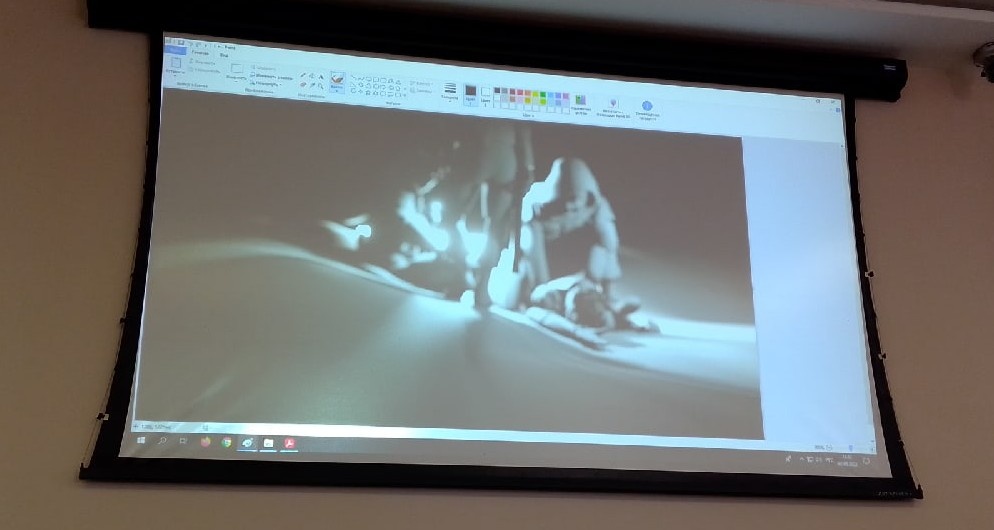 На экране - одна из последних фотографий дятловцев, которая, как утверждает журналист "КП" Наталья Варсегова, была обработана неким неназванным специалистом и улучшена , в результате чего стали видны фигуры людей (один человек справа лежит спиной