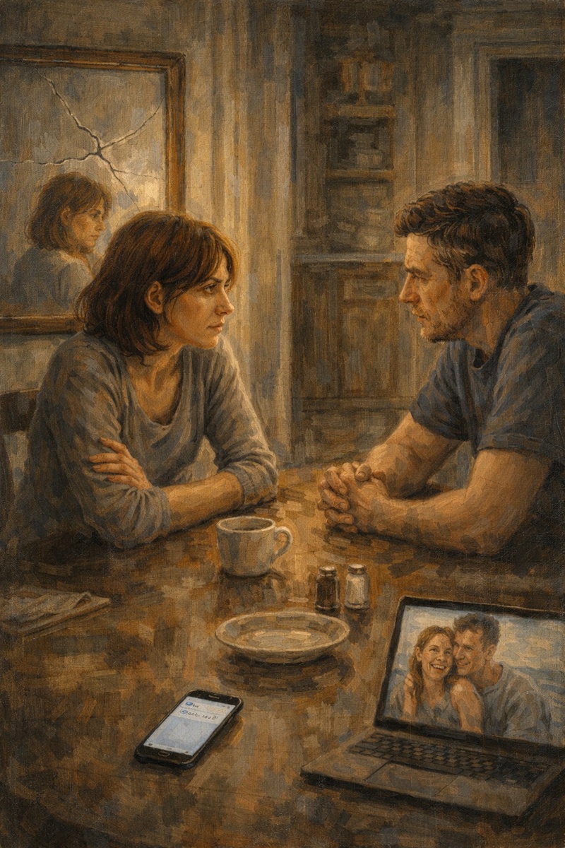 Все главы Они говорили вечером, когда Саша ушёл к другу с ночёвкой. Квартира вдруг стала непривычно большой, будто лишилась оправдания для шума. Марина долго мыла посуду, хотя чистой она была ещё до ужина. Андрей сидел в комнате, что-то смотрел, но звук был выключен. — Андрей, — сказала она, не оборачиваясь. — Ты можешь подойти? Он подошёл не сразу. Встал в дверях, опёрся плечом о косяк. Поза была защитной, и Марина это заметила, хотя раньше бы не придала значения. — Что случилось? — Я не знаю, как начать, — честно сказала она. Он вздохнул. Не раздражённо — скорее устало. — Тогда просто скажи. Марина вытерла руки полотенцем. Повернулась к нему. Несколько секунд они молчали, разглядывая друг друга, как люди, которые давно знакомы и всё равно боятся ошибиться. — Мне кажется… — начала она и запнулась. — Мне кажется, мы как будто живём рядом. Не вместе, а рядом. Он нахмурился. — Мы же вместе живём. — Я не про это. — А про что тогда? Вот здесь она должна была сказать главное. Но главное не
