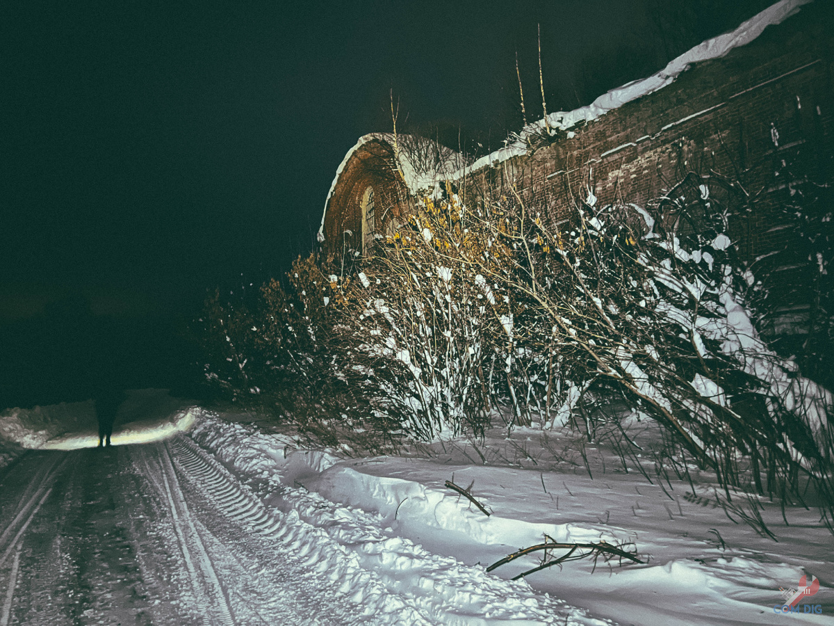 Снегопад не прекращался, но дорогу к месту расчистили. Это была удача, ведь заброшенный храм стоял прямо у обочины. Не пришлось, как в прошлый раз, пробиваться через глубокие сугробы. В одной галерее несколько фотографий — не забудьте листать их. С первого взгляда здание не похоже на храм. Скорее, на складской комплекс или административное здание. Внутри — большой зал, разделенный на комнаты с обычными деревянными дверями. На них — таблички «Посторонним вход воспрещён» и «Не курить». От церковного прошлого не осталось почти ничего: ни фресок, ни утвари. Стены осыпаются от времени и сырости. Мы начали осмотр, фиксируя детали. Некоторые находки выглядели необычно. Например, несколько противогазов, разбросанных по полу. Возникает закономерный вопрос: откуда они здесь и зачем? Но у каждой подобной детали в таких местах обычно находится своё логическое объяснение. Здесь раньше стояла деревянная Казанская церковь. Но в начале 1900-х годов местная община задумала масштабную стройку и возв