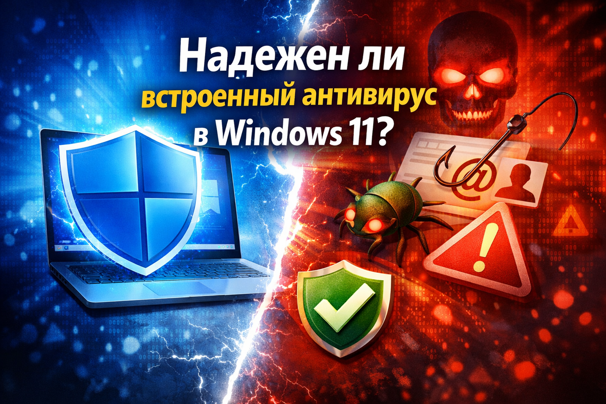 насколько хорошо встроенный антивирус Windows 11 реально защищает компьютер, или без стороннего ПО все-таки не обойтись? Разбираемся спокойно, без страшилок и рекламы. В Windows 11 по умолчанию установлен Microsoft Defender. Раньше его называли Защитник Windows, и тогда к нему относились скептически. Сейчас это уже не «заглушка», а полноценный антивирус, который умеет: И все это уже включено сразу после установки Windows. Если коротко: для большинства пользователей защита более чем достаточная. По независимым тестам Microsoft Defender стабильно показывает высокий уровень обнаружения угроз. Он хорошо справляется с: Особенно если пользователь не отключает обновления и не скачивает все подряд. Один важный момент, который многие упускают. Встроенный антивирус: Он идеально интегрирован в систему, а значит работает стабильно и незаметно. Для слабых и ср