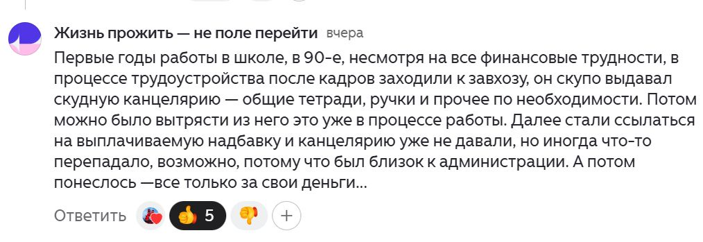 Вчерашний пост был про то, что многие учителя просто годами покупают всё сами для своей работы. Туда входят и мелочи, которые тоже складываются в хорошие суммы, например, ручки-тетрадки, и ремонт кабинета, если нет классного руководства. Так должно быть или нет? Обсудим)) Вот ссылка на пост,там начало разговора- Чтобы не быть голословным, приведу примеры, за что ещЁ платят учителя из своего кармана. Проблема не в том, чтобы что-то не купить, купить можно раз-два-три. Иногда, а не постоянно изо дня в день. Но когда это в системе и воспринимается, как норма и обязанность со стороны учителя, тогда это уже обязанность. И это выливается в десятки и сотни рублей. Напоминаю про подписку. Подпишитесь, чтобы быть на связи и продолжим))Спасибо)) Как было раньше, напоминает читатель Жизнь прожить-не поле перейти. Тетрадки- ручки- бумажные скоросшиватели,-помните такие серые картонные папки с верёвочкой, худо-бедно выдавали. Не сколько надо, но хоть что-то было. А потом понеслось, пошло-поехало.