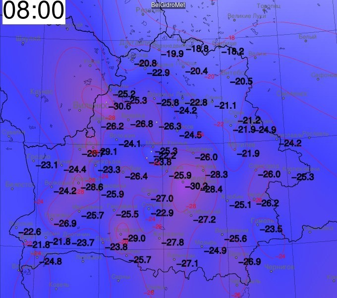 По состоянию на 8:00 на всей территории Брестской области столбик термометра преодолел рубеж в –20°С.