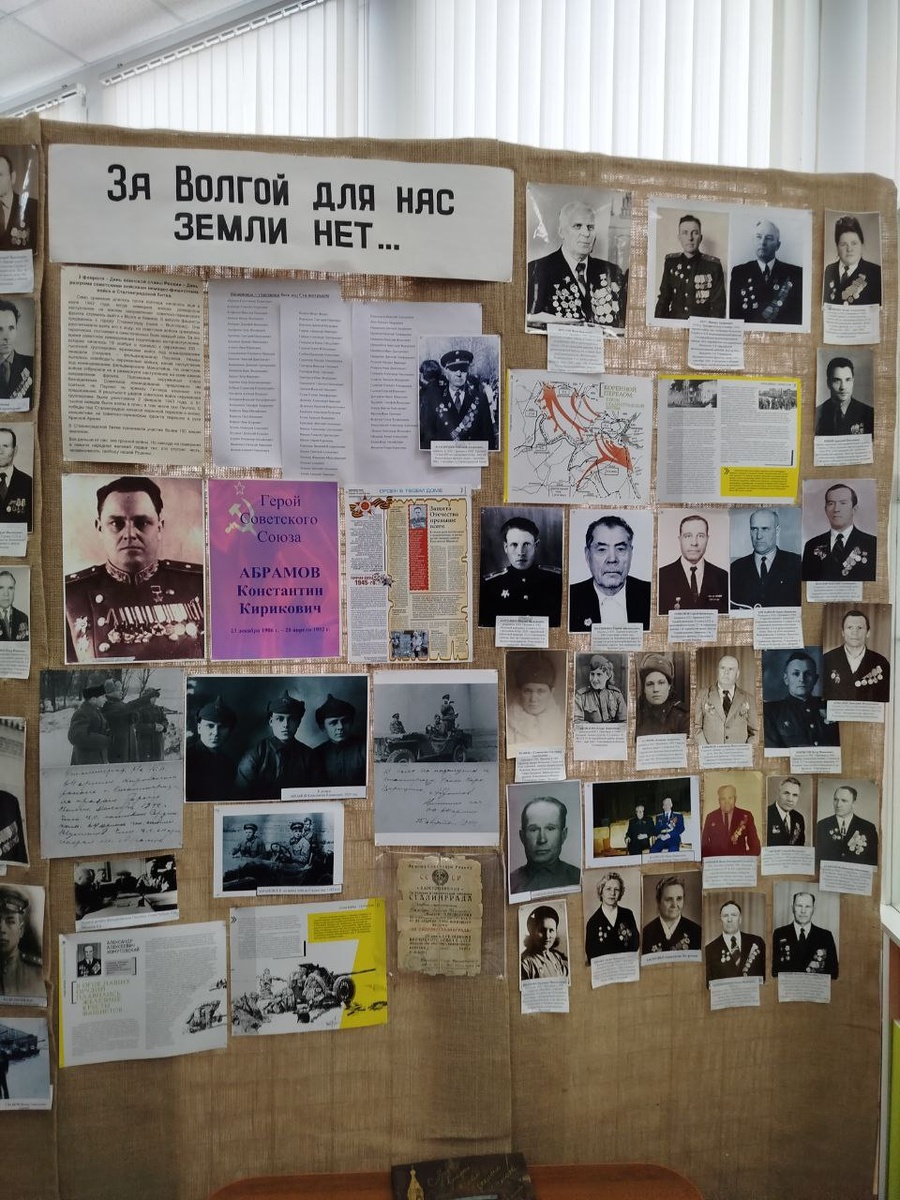 2 февраля Советская Армия разгромила немецко-фашистские силы в Сталинградской битве. Вспоминаем назаровцев-участников Великой Отечественной войны. Более 150 назаровцев участвовали и были награждены медалями «За оборону Сталинграда». В Музейно-выставочном центре оформлена фотовыставка «За Волгой для нас земли нет. О героях -назаровцах участниках Сталинградской битвы». Большой пласт материала посвящен герою СССР генерал-майору Константину Кириковичу Абрамову. Выставку в эти дни посещают школьники, для них сотрудники музея подготовили игру викторину «Сталинградская битва». Об одном из участников битвы, старшем лейтенанте Александре Хомутовском, рассказывает его правнук Александр в аудиовизульном проекте МВЦ «Расскажи о герое».
