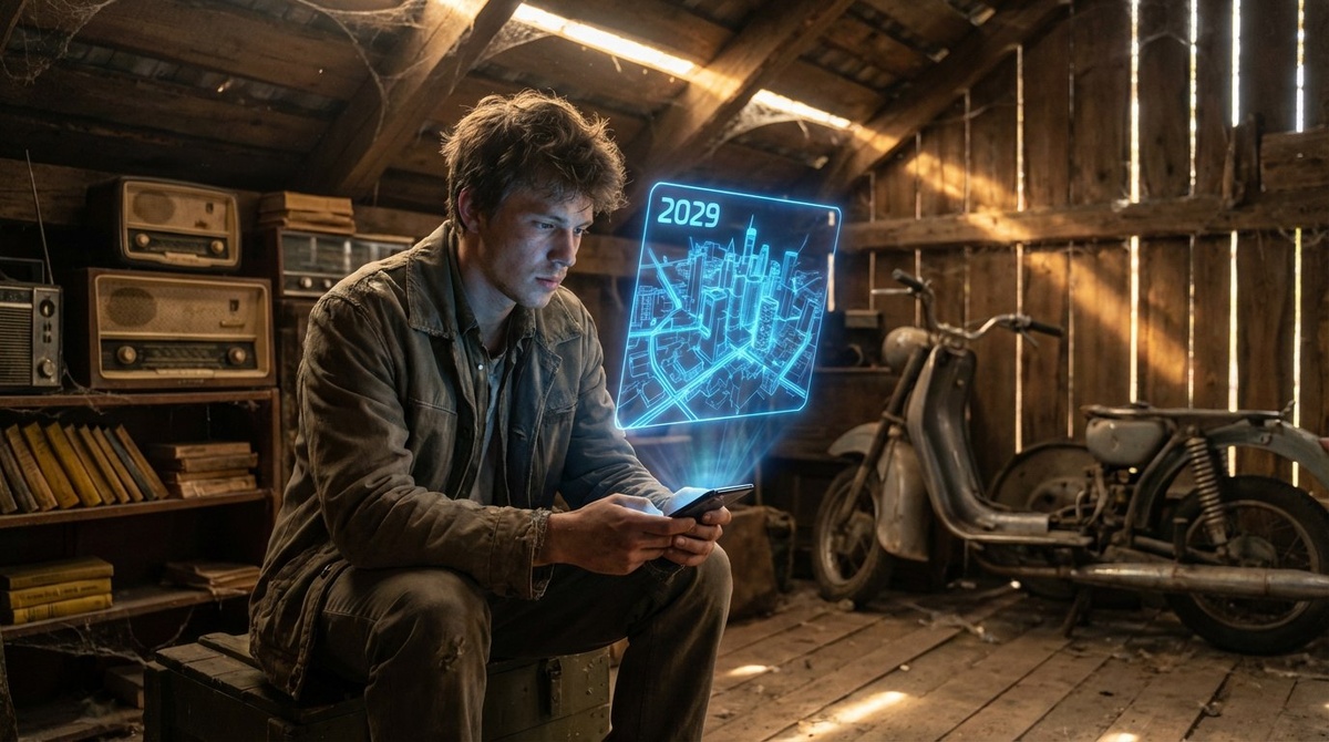 Максим чуть не уронил гаджет. Экран загорелся. Интерфейс был незнакомым: иконки плавали в объеме, реагируя на взгляд. Но шокировало не это. В правом верхнем углу горела дата: 18 сентября 2029 года. Заряд батареи: 14%. (Как он держал заряд столько лет?!)