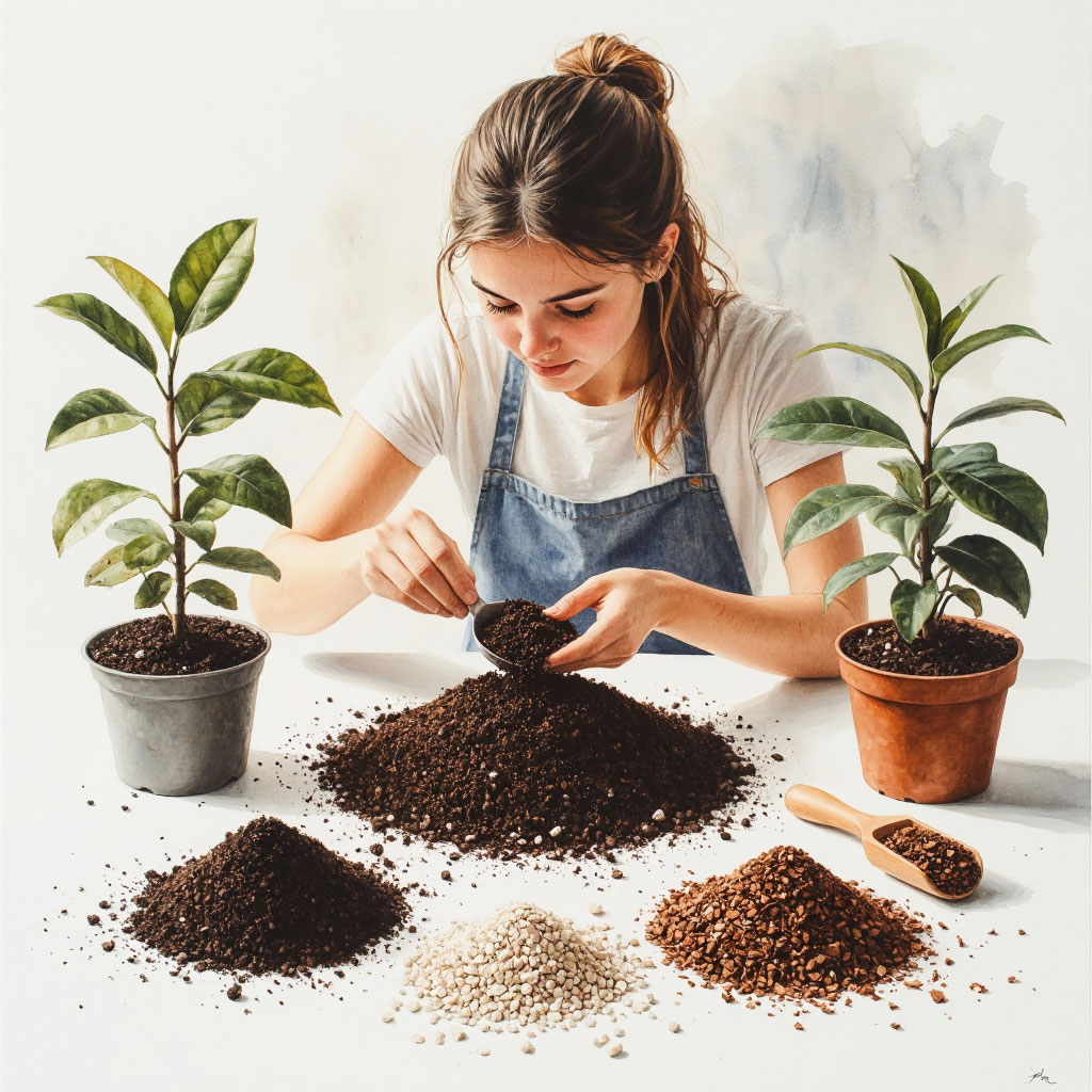 - Смешивайте для баланса. Идеальный субстрат — компромисс. Например: торф/кокос (влагоёмкость и питание) + кора/перлит (аэрация) + цеолит (защита от засоления). Цеолит, добавленный даже 10-15% в торфяную смесь, существенно повысит её стойкость к засолению.