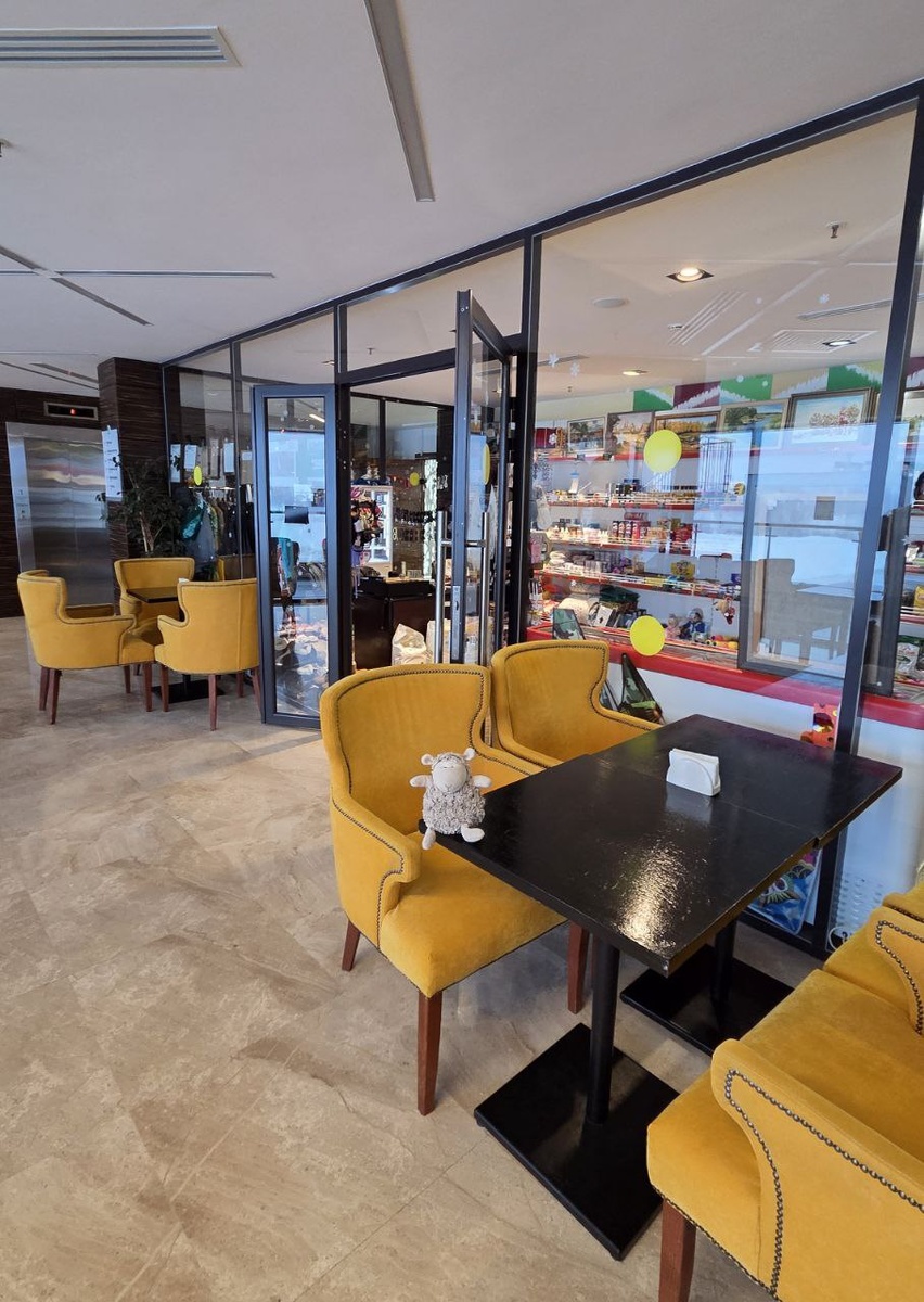 На втором этаже — магазинчик, который приятно ломает шаблон «набор магнитов и пыль». Тут действительно есть что посмотреть: одуванчиковое варенье, шоколад с женьшенем, и главное — рукописные сувениры от местных художников — вообще не стыдно себе купить или в подарок. #azimut