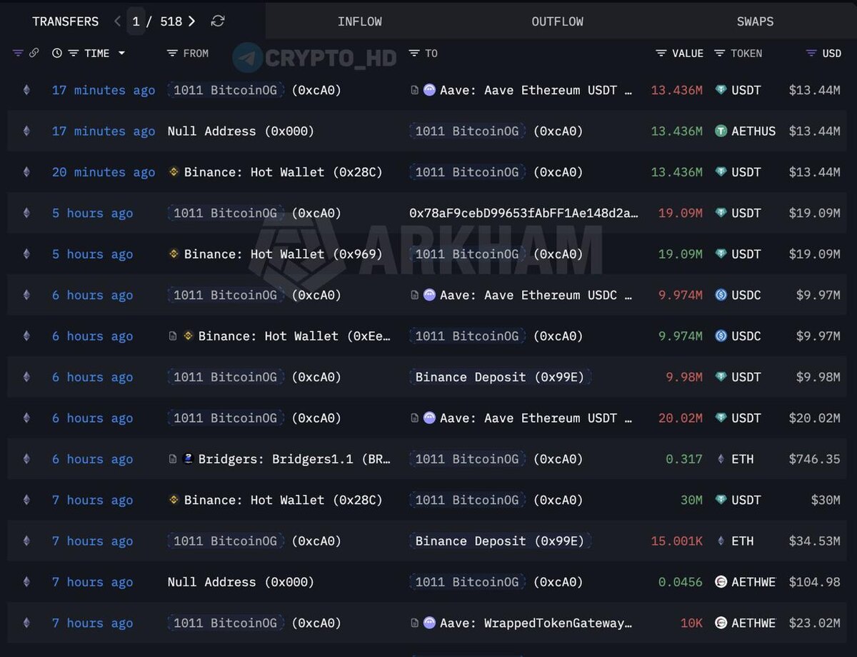 🫡 Инсайдер Bitcoin OG продает #ETH, чтобы погасить долг в Aave