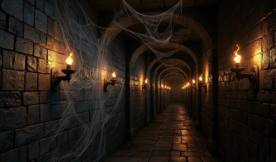 Она свернула в длинный тёмный коридор, стены которого были выложены из больших, грубо обтёсанных, камней, пол оказался более ровным, но тоже каменным, с потолка свисала паутина. Коридор освещали факелы, вставленные в специальные держатели на стенах. Это место создали Первые Старейшины, оно было именно таким, каким они хотели его видеть. Из уважения к ним здесь ничего никогда не меняли, лишь ремонтировали время от времени.