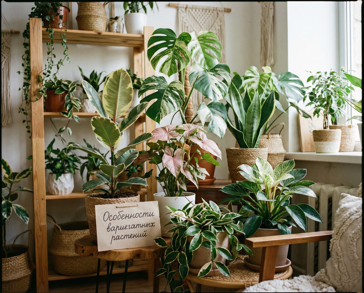 Вариегатные растения требуют чуть больше внимания, чем обычные зелёные собратья, но их красота полностью оправдывает усилия. Поддерживайте оптимальный свет, влажность и умеренный полив — и ваши белые, кремовые или оранжевые листья будут радовать глаз круглый год.