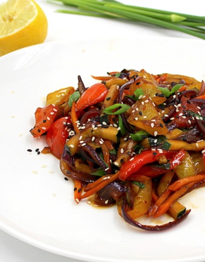 Если вам близки вкусы азиатской кухни, обязательно попробуйте овощи в соусе терияки на сковороде. Это простой, но очень ароматный и насыщенный по вкусу рецепт, в котором обычные овощи заиграют новыми красками. Соус терияки добавляет приятную сладость и умами, а быстрая обжарка на сковороде сохраняет овощи сочными и чуть хрустящими. Вы можете использовать готовый соус терияки, он часто встречается в крупных супермаркетах. Овощи получаются сочными, с лёгким хрустом и насыщенным вкусом — отлично как самостоятельное блюдо или гарнир. А ещё — это отличный способ использовать остатки овощей из холодильника. Нам понадобятся следующие ингредиенты: • болгарский перец — 400 г