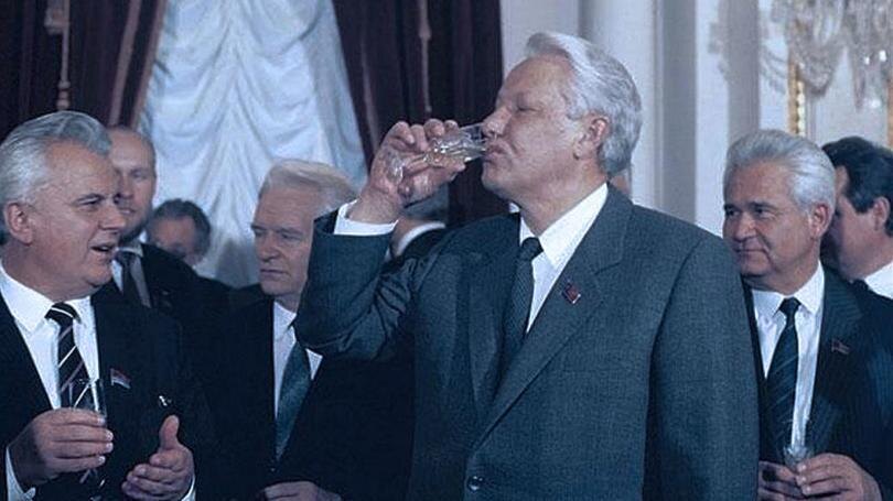 Финал закономерен: Беловежские соглашения, ликвидация СССР и запой нового «хозяина Кремля». «Как только, значит, спустили красный флаг с флагштока резиденции Президента СССР, тут же повесили туда российский флаг. Вот. И Борис Николаевич ушёл в запой».