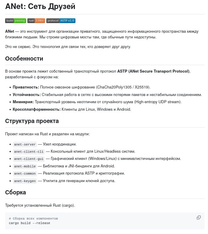 📝 Кратко: Представлен открытый проект ANet (ANet Secure Transport Protocol). 🔗 Читать оригинальную статью (ссылка) 📊 Источник: Habr ⏰ Время: 02.02.2026 10:02 📱 Другие каналы: 🪙 ВКрипту | 🎮 ВИгрухи | 🏎️ ВТачки | ✈️ ВТравелу #gadgets #гаджеты #технологии