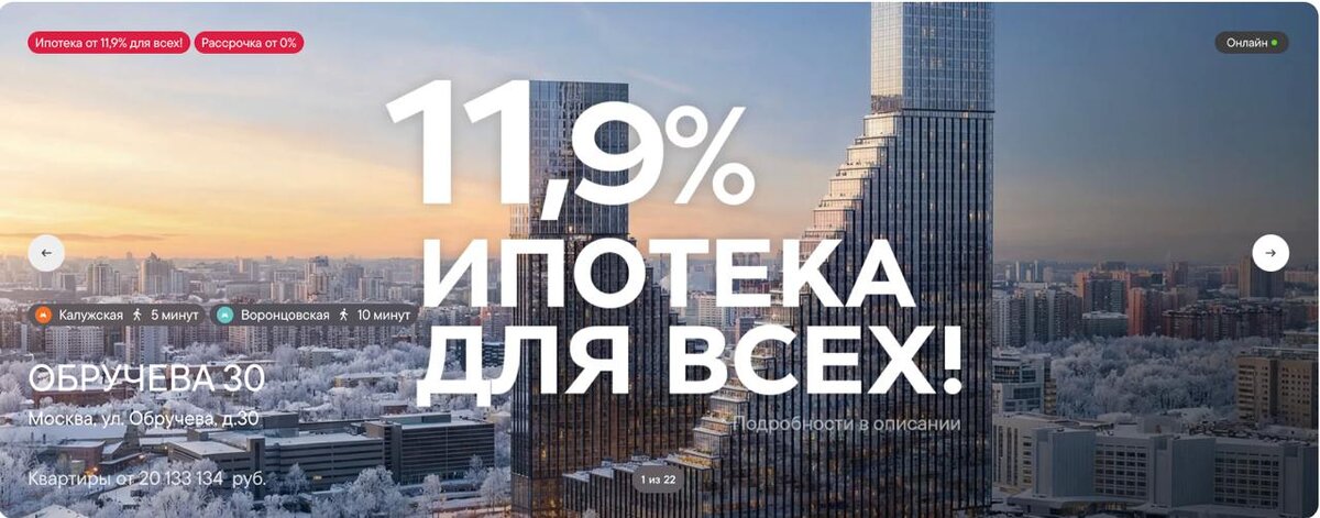 » Несколько дней назад я рассказывал об инструментах, которые будут максимально активны в 2026 году. И уже сейчас застройщики начинают декларировать новые акции. Давайте разберем условия на конкретном примере. Проект: ЛСР «Обручева 30». Новое предложение: ипотека от Т-Банка под 11,9% для всех покупателей. При этом действует так называемая «красная цена» Анализируем условия : 1. Распроданность и зависимость от акций. Текущая распроданность проекта - 62%. Это неплохой показатель, но важно понимать контекст: проект крупный, и такие темпы продаж поддерживались в основном за счет либо привлекательной цены, либо акций (например, «траншевых» ипотек на старте). Вывод: без стимулирующих программ продаваться ему будет сложно. 2. Сроки сдачи: будьте осторожно с манипуляциями. Заявленный срок передачи ключей - 4 квартал 2027 года. • На дату «сдачи» (получения разрешения на ввод) обращать внимания не стоит, так как Застройщик за нее не отвечает. Его обязанность - передача ключей. • Судя п