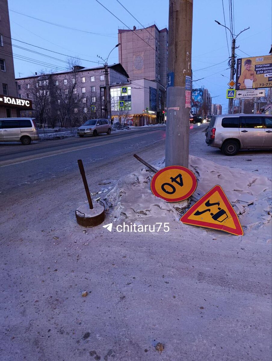 Перекресток Бутина и Балябина больше не скользкий. Кто-то вырвал временные знаки из стойки и бросил к стоящему рядом столбу. Видимо, разозлился на ограничение скорости. Фото: очевидец 📌📌 Предложить новость