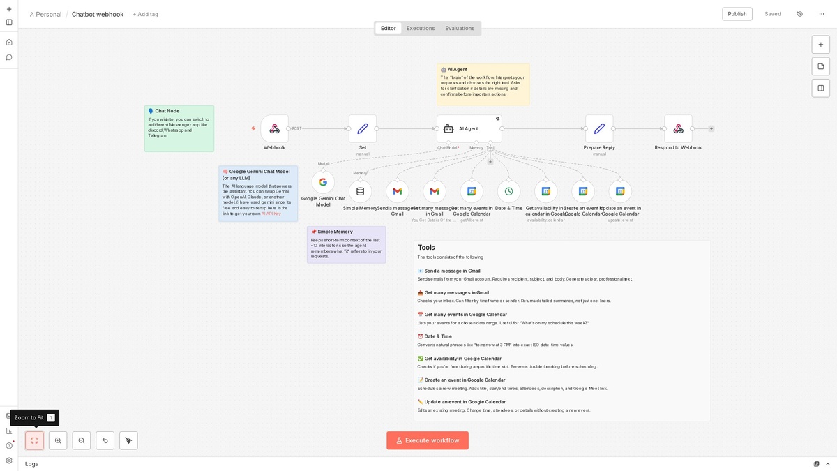 ⚡ Что делает: Автоматизация получает запросы от пользователей через вебхук, обрабатывает их с помощью Google Gemini и генерирует ответ. Затем она создает события в Google Календаре или отправляет уведомления на Gmail в зависимости от содержания запроса. 👥 Кому подойдёт: Разработчикам, создающим интерактивные чат-боты для бизнеса. 💡 Пример: Чат-бот может записывать пользователей на встречи, отправляя им подтверждения по электронной почте. 🔗 Ноды: Agent, Date Time Tool, Gmail Tool, Google Calendar Tool, Lm Chat Google Gemini 📊 Сложность: Сложный #n8n #automation #nocode #aiagent #ai #datetimetool ════════════════ 🎬 YouTube | ⚙️ Канал | 💬 Чат | 📮 Реклама