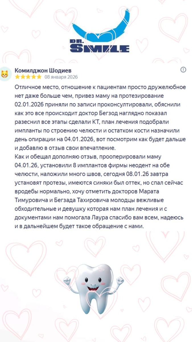 🥰 Мы делаем свою работу от всего сердца и нам очень приятно, что вы это замечаете! Ждём вас в любом удобном филиале с 9:00-21:00, без выходных:🙌 📍Москва, Руновский пер., 11/13, м. «Новокузнецкая». 📍Москва, ул. Новая Басманная, д. 29, стр. 1, м. «Бауманская», «Комсомольская», «Красные Ворота». Вы можете записаться:👇 По телефону: 📞+7 495 134-35-03 🔔Через МAX или Телеграм: +7 919 966 41 37 +7 916 671 85 31 +7 936 134 25 72 На нашем сайте: 📌https://doctorsmile.ru/ 👇В комментариях под этим постом. Мы свяжемся с вами максимально быстро. С заботой о Вас, Доктор Смайл