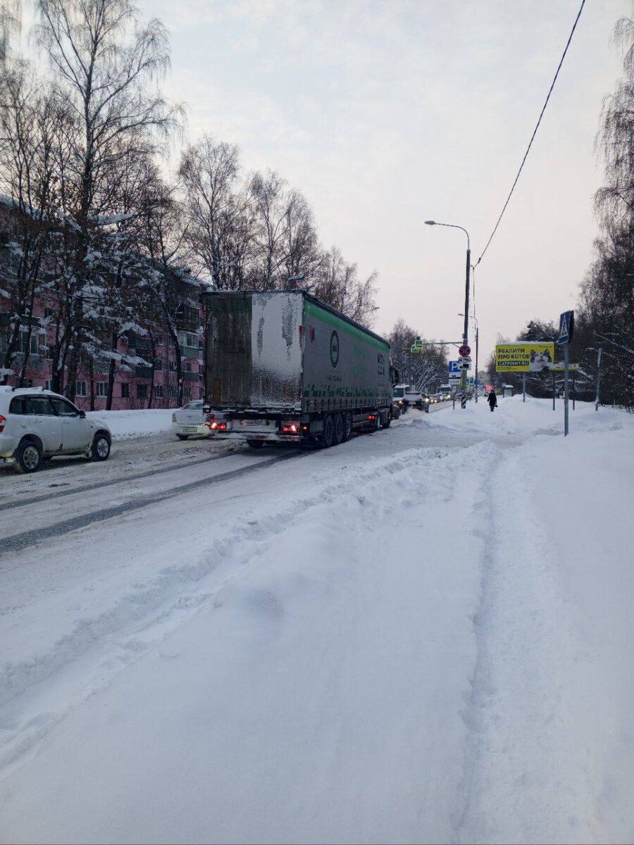 автобусы до Монино идут с большим опозданием, фура буксует около остановки Детский сад