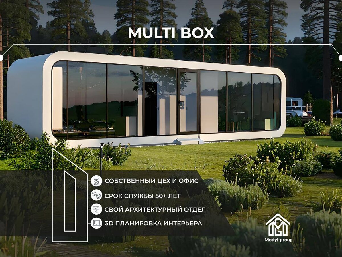 🏡 Площадь дома 68.5 м² Внутри: Просторная кухня-гостиная 20.3 м² Две спальни с панорамным остеклением по 8.2 м² Санузел 3.3 м² И полузакрытая веранда площадью 19.2 м² В стоимость уже включена полная внутренняя и внешняя отделка, теплый пол по всех комнатах, электрика и сантехника. ⛅Дом подходит для круглогодичного проживания. В нем тепло даже в -40! ✅Сборка дома у нас в цехе занимает 60 дней Установка у вас на участке 1–2 дня 📎Важно! При покупке модульного дома вы получаете в подарок комплект «умного дома». Акция включает в себя: «Мини Алиса» - голосовой помощник, WiFi регуляторы теплого пола, датчик температуры и влажности в помещении. Modyl-group Company – надежный строитель. Мы даем гарантию на конструкцию 36 месяцев и доставляем по всей России. Более подробно ознакомиться с информацией можно на нашем сайте: modyl.info/