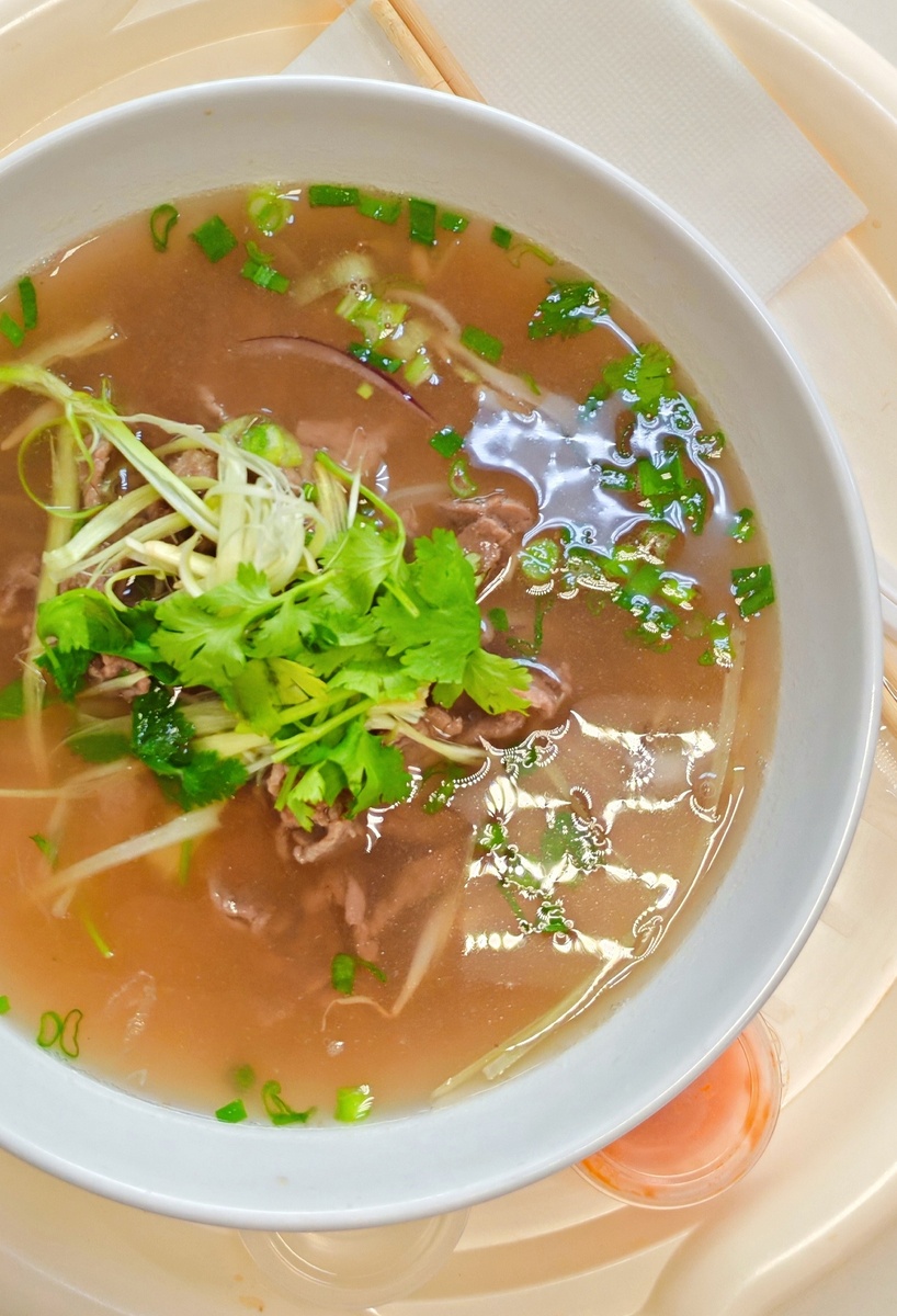 На кассе меня встречает юный вьетнамец, лет так эдак двадцати, прекрасно владеющий русским языком, которому я собственно и изъявляю желание отведать 641-ый вариант приготовления вьетнамской рисовой лапши с говядиной в бульоне для своей личной нематериальной фуди коллекции. Он вежливо принимает мою просьбу, а я начинаю все внимательно рассматривать, ведь помимо самой кухни здесь расположился совмещенный с ней маркет вкусняшек из Вьетнама, но долго делать это не приходится, ведь буквально спустя пару минут передо мной ставят поднос с одинокой плошкой...