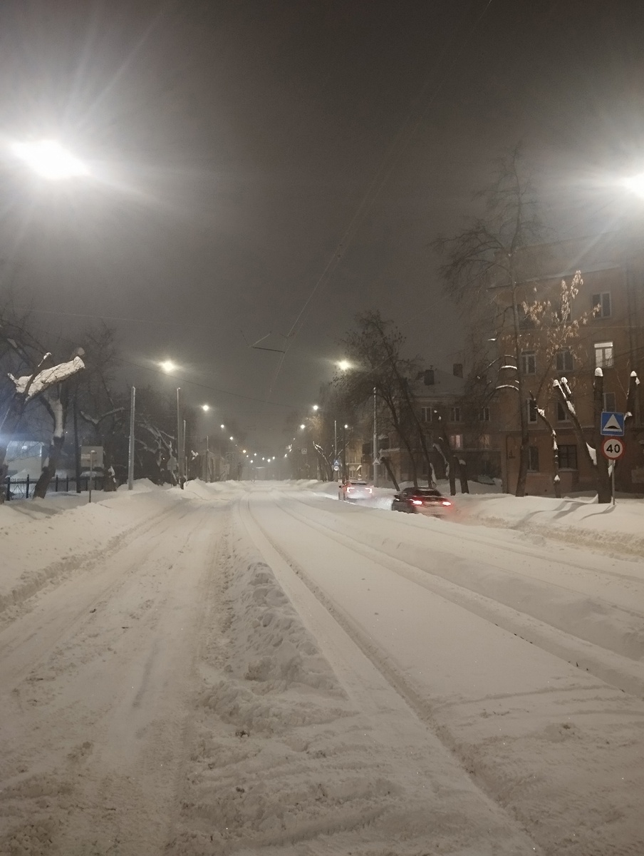 Снег на нашей улице убрать забыли. И пришлось идти , месить эту кашу пешком. Рельсы вообще завалило. Не видно их совсем.