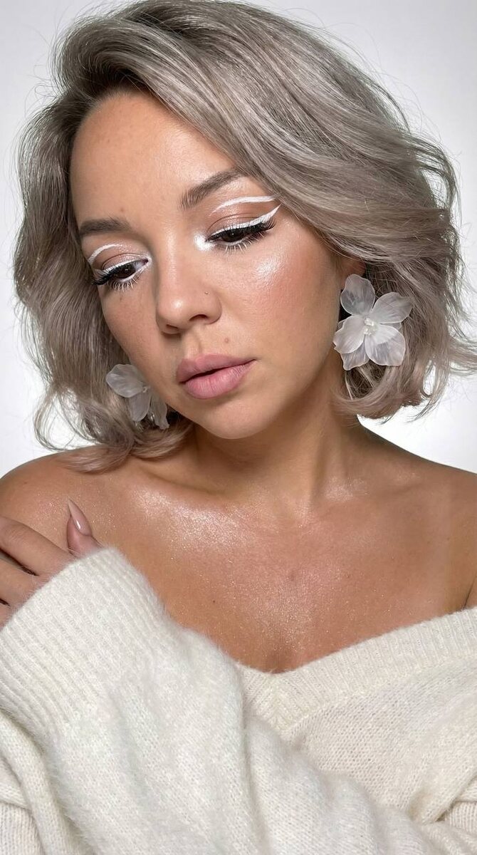 👇🏻 🌟Переходим на удобный сервис для генерации: Ссылка 👉 Syntx Ai Ссылка 👉 Veo3 📌ИНСТРУКЦИЯ ПО ИСПОЛЬЗОВАНИЮ В ЗАКРЕПЛЕННЫХ СООБЩЕНИЯХ ◾️ПРОМТ : Создай портрет, не меняя черты лица. Крупный план лица девушки в стиле "высокой моды". Волосы цветом как на фото, короткие, но густые, блестящие, с обьемом у корней, волнистые слегка. прилегают к лицу прядки Элегантный макияж глаз с длинными острыми белыми двойными изогнутыми стрелками, длинные густые ресницы эффект лучики, нижние густо ресницы накрашены белым и белый каял карандаш на нижнем веке белый Хайлайтер во внутренних уголках и скулах. Пухлые губы слегка пудрово розовые. Голова прямо слегка наклонена вниз На ней пушистый дорогой кашемировый белый свитер плечи открыты. Тело и декольте подсвечены хайлайтером и шимером На ушах сережки объемные полупрозрачные цветы белые Высокая детализация текстур кожи, одежды и волос. Черты лица-полностью сохранены как на референсном фото. Формат 9:16 Ногти миндальной формы нюдовые е