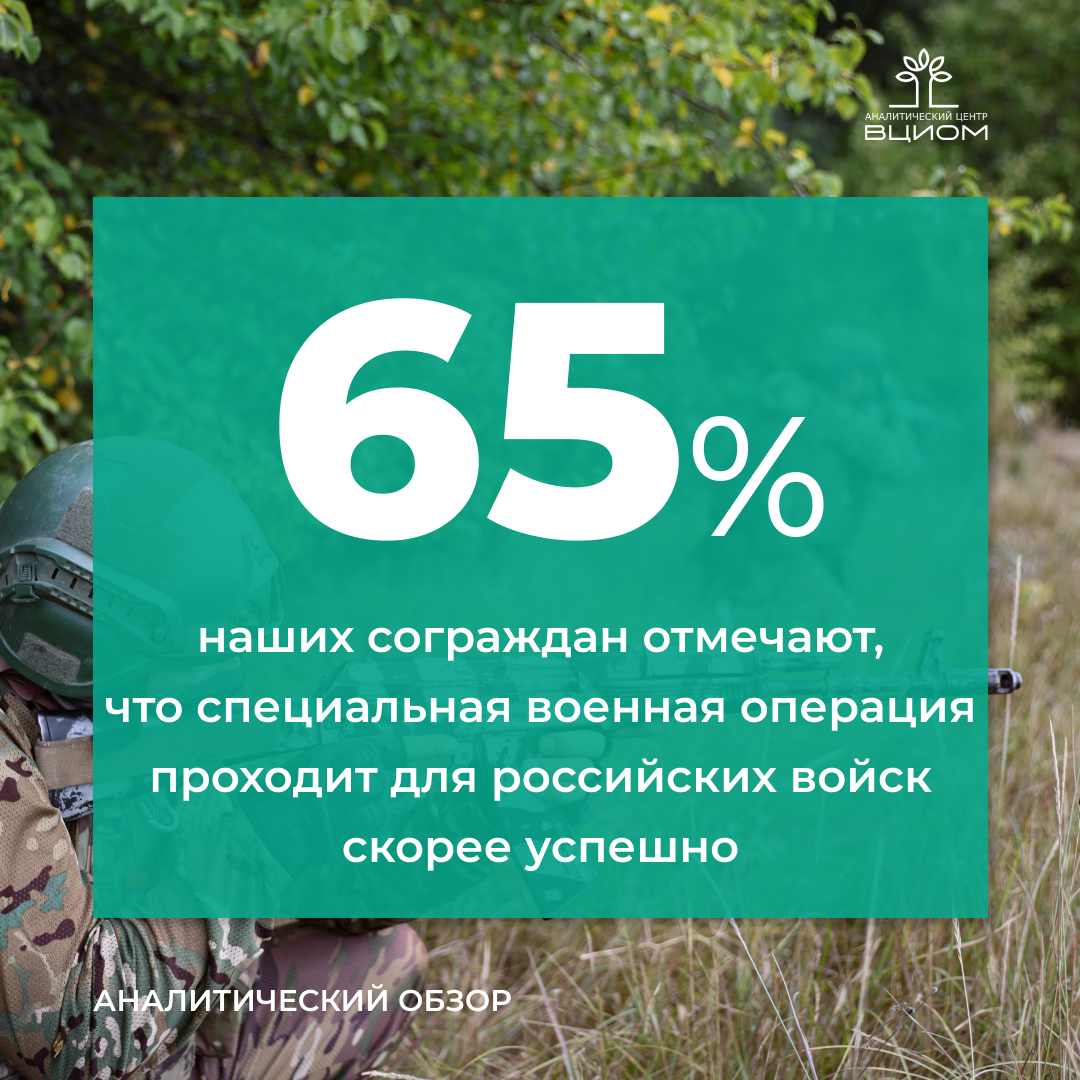 На протяжении всего периода наблюдений уровень поддержки СВО сохраняется на стабильно высокой отметке. 65% респондентов заявили, что скорее поддерживают решение о ее проведении. В свежем январском замере показатель вернулся к февральским значениям четырехлетней давности, т.е. к самому началу спецоперации. Аналогичный показатель зафиксирован и в оценках успешности хода СВО для российских войск: 65% опрошенных считают его скорее успешным. Источник: АЦ ВЦИОМ