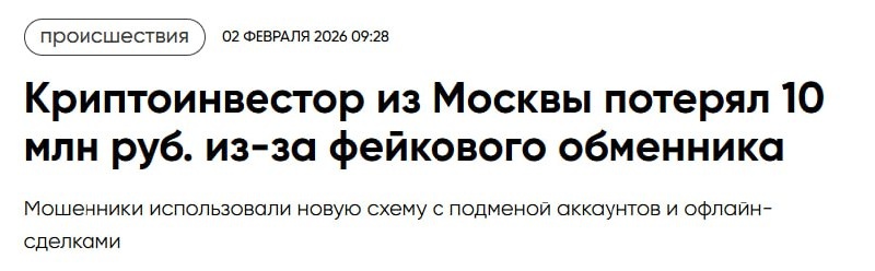 » Москвич подарил 10 миллионов «челнокам», придя ногами в реальный офис обменника. Началось всё с классики: криптан нашел в Телеге канал, который один в один косит под известный обменник: тот же логотип, те же отзывы и всё в таком духе. Договорился о встрече и поехал в офис, уверенный, что на месте его точно не кинут. А пока он ехал, скамер создал полную копию профиля самого криптана и написал настоящему обменнику от его имени. В итоге в офисе сидит реальный человек, а в чате с кассиром общается мошенник. Весь фокус провернули на тестовом переводе. Криптан кидает свой адрес мошеннику (думая, что пишет обменнику), мошенник тут же пересылает свой адрес обменнику. Обменник шлет 10 USDT скамеру, а тот мгновенно перекидывает их криптану. Человек видит приход, расслабляет булки и отдает 10 лямов налом. Обменник, не чуя подвоха, шлет всю котлету на тот же адрес, с которого был тест, то есть мошеннику. Самое забавное, что люди сидели в метре друг от друга, пили кофе, но общались исключитель
