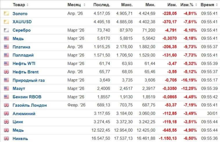 📊 Наблюдается резкий спад цен на сырье: стоимость металлов упала на 5-10%, нефти снизилась примерно на 5%, природный газ потерял более 10%.