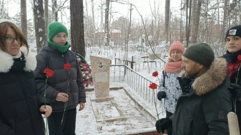 Школьники из Бердска очистили от снега могилу и стелу Героя Советского Союза Дмитрия Пастухова