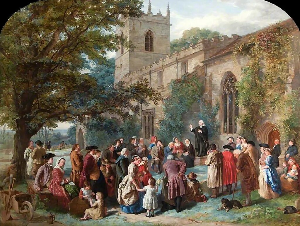 К тому времени в Англии во всю гремела промышленная революция. Обнищавшие крестьяне изгонялись со своих наделов могущественными лэндлордами. Обездоленные нищие валом повалили в крупные промышленные города, наполняя мануфактуры и фабрики. Тяжкий 14-часовой труд и адские условия жизни приводили к тому, что многие работяги с семьями стали отдаляться от религии, да и какая там религия, когда тебя опустили до уровня скота и Церковь никак не реагирует на твоë бедственное положение? Они переставали посещать церковные литургии в англиканских храмах, и тогда литургия пришла к ним. Методисты начинают бродить по грязным промышленным районам, по шахтëрским посëлкам и проповедовать под открытым небом.