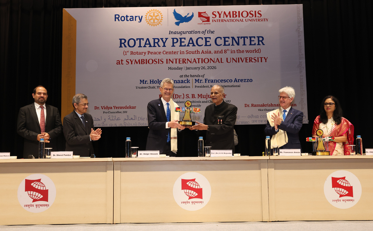 Сегодня слово «мир» звучит особенно чувствительно. Оно может вызывать разные эмоции и интерпретации в зависимости от контекста. В такой ситуации говорить о мире важно с особой аккуратностью — не с позиции призывов или лозунгов, а через конкретные действия, направленные на взаимопонимание, заботу о внутреннем равновесии и поиск устойчивых решений для общества и природы. В рамках важного шага по поддержке мира и развития 26 января 2026 года в городе Пуна (Индия) состоялось торжественное открытие Центра мира Ротари при Международном университете Симбиозис (SIU). Ежегодно Центр мира Ротари на базе университета SIU будет отбирать и принимать до 40 человек в программу Rotary Peace Fellows — это престижная инициатива РИ, направленная на подготовку лидеров в сфере мира и развития. С 2002 года центры мира Ротари подготовили более 1 800 специалистов для работы в области миротворчества. Выпускники программы сегодня возглавляют подразделения в государственных и негосударственных организациях, межд