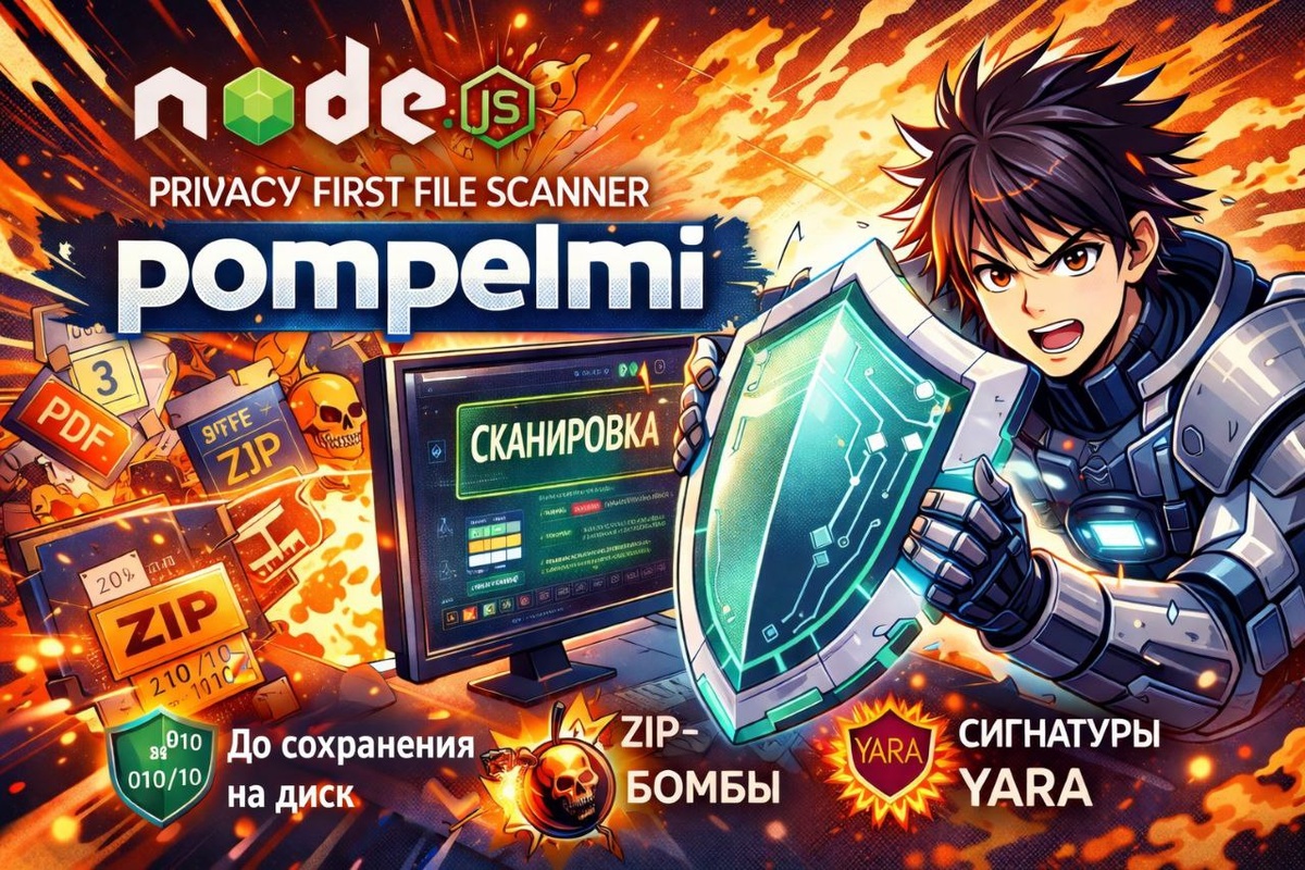 В веб-приложениях одна из самых уязвимых точек - это загрузка файлов пользователями: изображения, документы, архивы, PDF и т.д. и т.п.. Если файлы не фильтровать, вы рискуете столкнуться с вредоносами и эксплоитами. Данную проблему пытается решить pompelmi. 🤔 Что такое pompelmi? pompelmi - это open-source file-scanner для Node.js, написанный на TypeScript. Проект делает упор на безопасность и простую интеграцию в серверные приложения. Ключевые особенности: 🔍 проверка файлов до сохранения в файловой системе ⚡ минималистичная и быстрая реализация 🔒 полностью локальная работа, без облачных вызовов 🔌 адаптеры для популярных веб-фреймворков 🧱 Основные возможности pompelmi ✅ Сканирование до записи на диск Главная идея проверять файл как можно раньше, прежде чем он окажется в файловой системе. Это снижает риск эксплуатации уязвимостей файловых парсеров и вспомогательных библиотек. 🔍 Безопасная обработка архивов - pompelmi умеет: безопасно обходить архивы с ограничением глубины; -