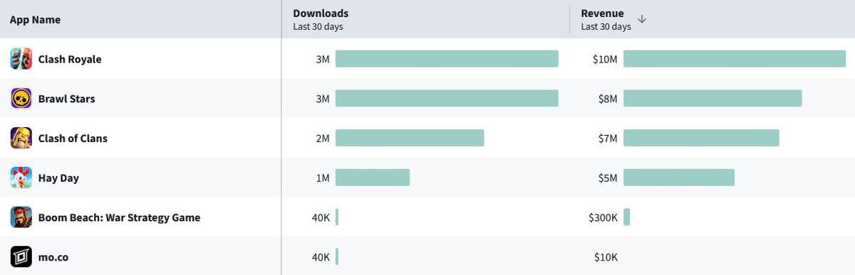 За январь Supercell суммарно заработали почти 100 миллионов евро, если распределять по играм, то цифры следующие: • Clash Royale: 36.000.000$ • Brawl Stars: 25.000.000$ • Clash of Clans: 22.000.000$ • Hay Day: 15.000.000$ • Boom Beach: 900.000$ • MoCo: 50.000$ Clash Royale заработал почти в два раза меньше, чем за прошлый месяц. Разрабы определенно идут в правильном направлении! ✅Новости по Clash Royale - ТЫК 💬Новости по Roblox - ТЫК Мир Supercell. Подписаться
