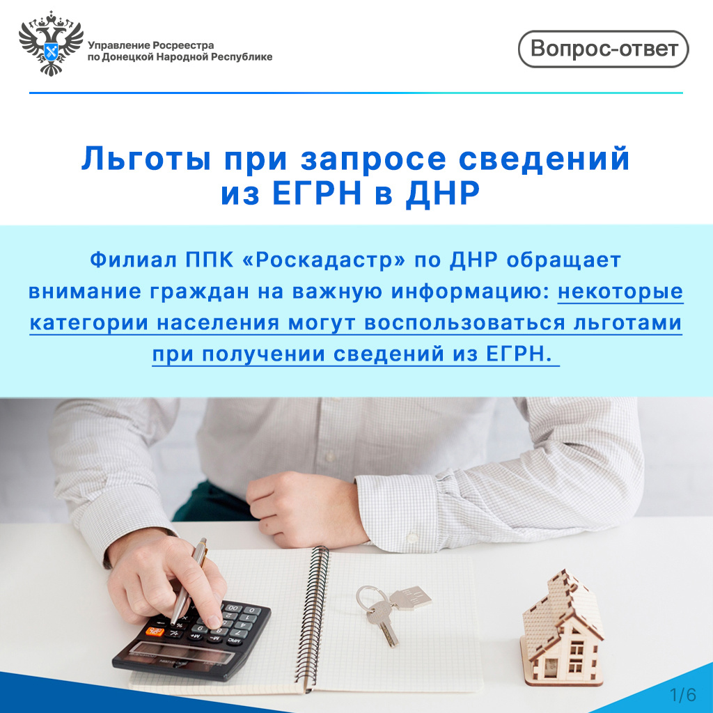 Филиал ППК «Роскадастр» по Донецкой Народной Республике напоминает: определённые категории граждан имеют право на скидку при получении сведений из Единого государственного реестра недвижимости (ЕГРН).